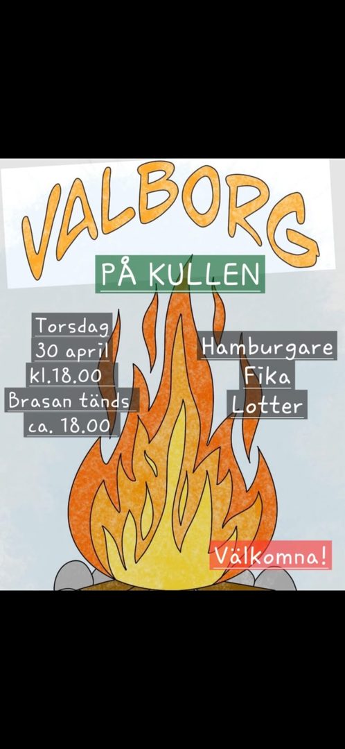 Kom och fira Valborg på Sandslån, kullen. Försäljning av kaffe, fika och hamburgare. Vi tänder brasan ca 18:00.